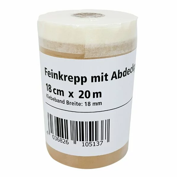 Feinkrepp inklusive Abdeckpapier zum abkleben und abdecken bei Streich- und Tapezierarbeiten. Ihr Boden und die Leisten sind somit vor heruntertropfender Farbe geschützt.