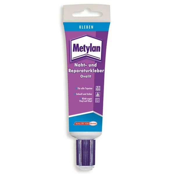 Der Metylan Naht- und Reparatur-Kleber hat eine sehr hohe Festigkeit und ist hoch wärmestandfest. Er trocknet transparent auf und eignet sich für die Verklebung von Tapeten bei überlappenden Nähten, Inn- und Außenecken, sowie Reperaturklebungen.