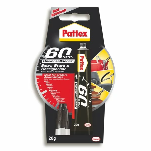 Dieser Pattex Universalkleber verklebt viele Materialien in 60 Sekunden. Er eignet sich sowohl für den Innen-, als auch Außenbereich und ist zudem wasserfest.