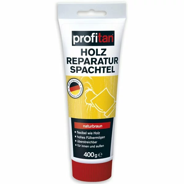 Der profitan Holz-Reparatur-Spachtel ist, wenn Sie schnelle und gute Hilf benötigen, genau das Richtige. Er ist gebrauchsfertig und einfach zu verarbeiten. In Naturbraun können Sie viele Holzschäden reparieren und Unebenheiten ausbessern. Er zeichnet sich durch die gleiche Flexibilität wie Holz aus und besticht durch ein hohes Füllvermögen. Nach dem Trocknen kann er einfach überstrichen werden und ist außerdem für den Innen- sowie Außenbereich geeignet.