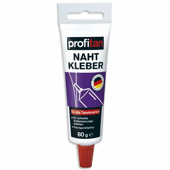 profitan Nahtkleber – die intelligente Hilfe wenn beim Tapezieren etwas schief gegangen ist. Flicken Sie Risse in Ihren Tapeten oder bessern Sie sich lösende Nahtstellen unkompliziert aus. Der profitan Nahtkleber eignet sich für alle handelsüblichen Tapeten und ist gebrauchsfertig in der Tube.