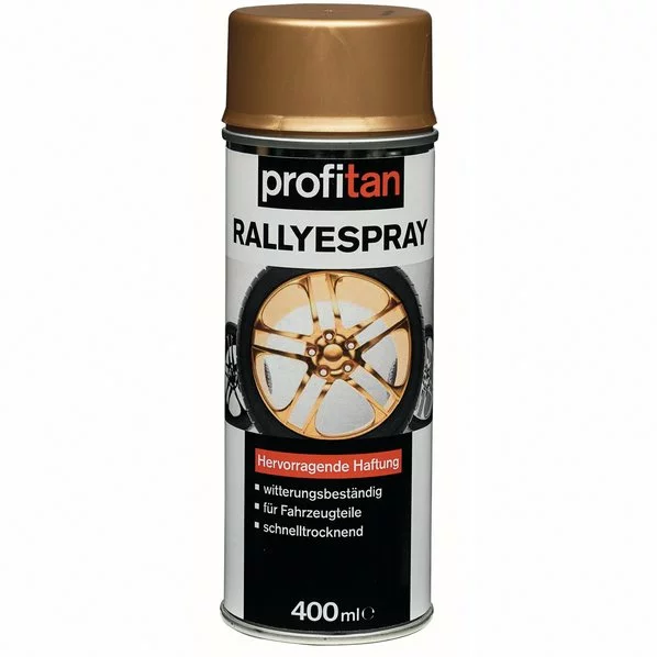 Goldfarbenes Rallye-Spray profitan für Fahrzeugteile. Dieses Spray mit herrovagender Haftung ist witterungsbeständig und schnelltrocknend.