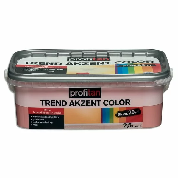 Bringen Sie Farbe in Ihre 4 Wände – mit der Wandfarbe profitan der Serie „Trend Akzent Color“ in einem Cupcakefarbton. Diese matte Innendispersionsfarbe ist dickflüssig und kann mit Wasser verdünnt werden.