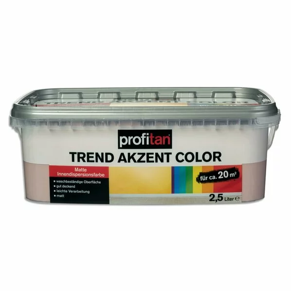 Bringen Sie Farbe in Ihre 4 Wände – mit der Wandfarbe profitan der Serie „Trend Akzent Color“ in dem Farbton Moulin Rouge. Diese matte Innendispersionsfarbe ist dickflüssig und kann mit Wasser verdünnt werden.