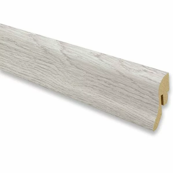 Clipbare Sockelleiste in Eiche grau Nachbildung für einen sauberen Abschluss von Boden und Wand. Diese Fußleiste verfügt über eine Länge von etwa 250 cm und misst in der Höhe etwa 4 cm. Mit diesen Abschlüssen sorgen Sie für ein wohnlicheres Ambiente in Ihren Räumen.