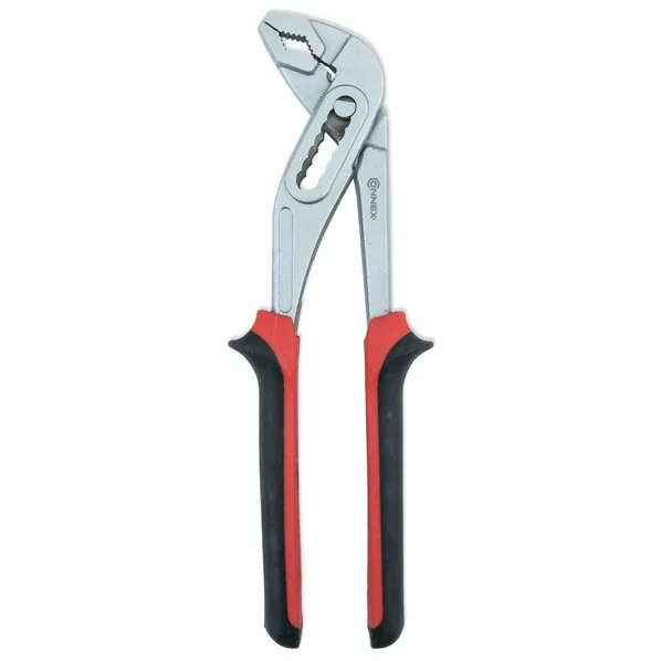 Diese Wasserpumpenzange aus Metall hat ein verstellbares Gleitgelenk, so dass Sie sich auf unterschiedlich große Öffnungsweiten bzw. auf die Größe Ihrer Werkstücke einstellen lässt.